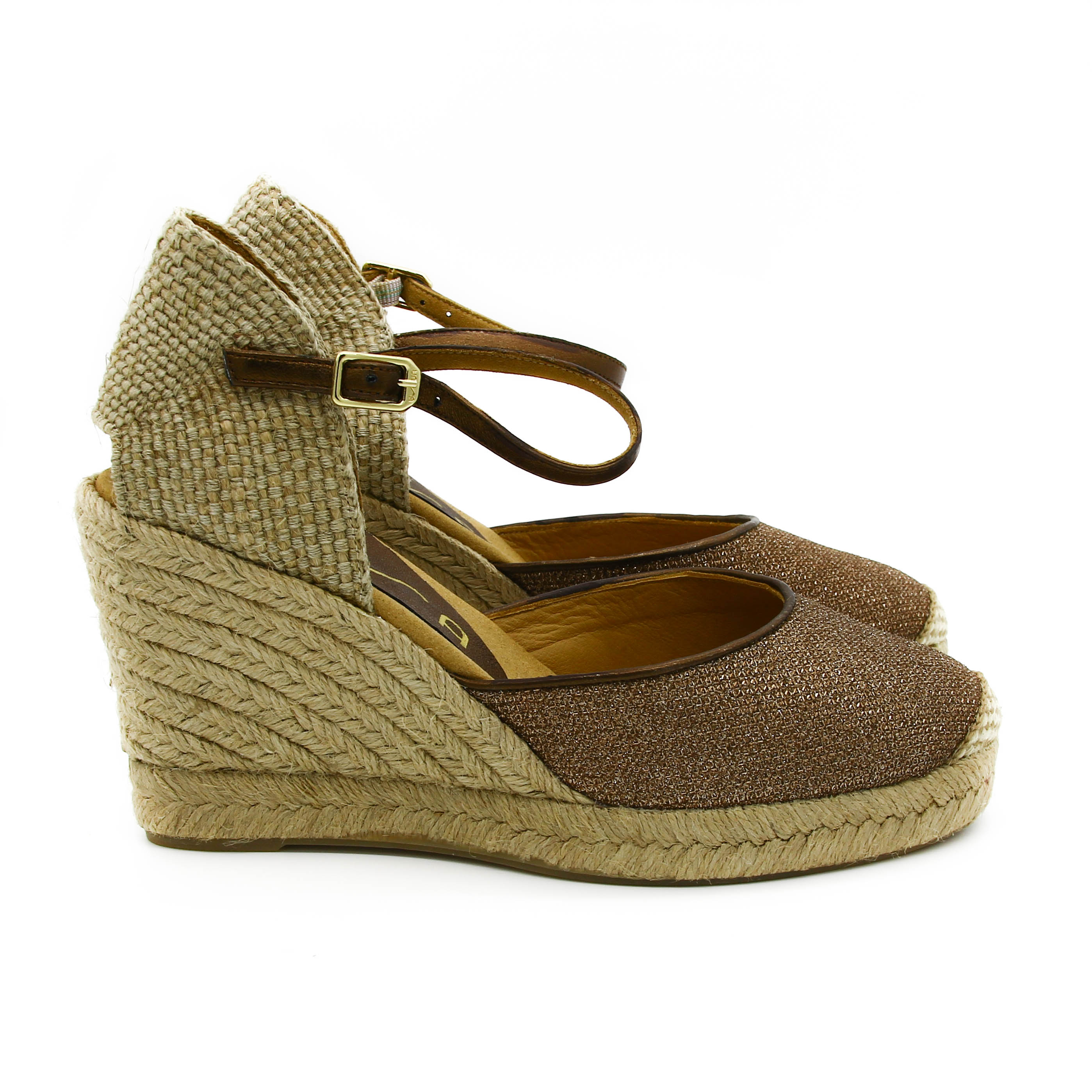 красивые эспадрильи на танкетке. украшены тканью с рюликсом, что добавляет им элегантности.