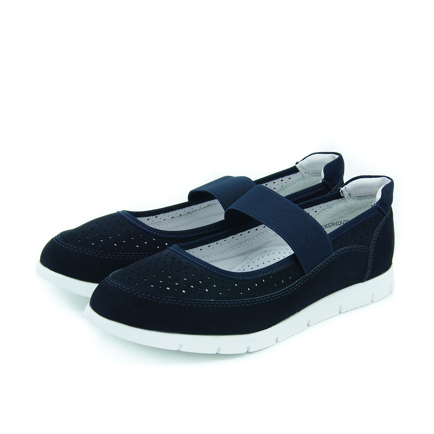 темно-синие туфли для сменки. перфорация и перемычка из резинки.